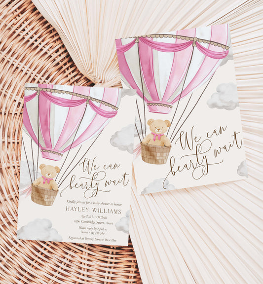 Bearly Wait Pink | Printable Baby Shower Invitation Template