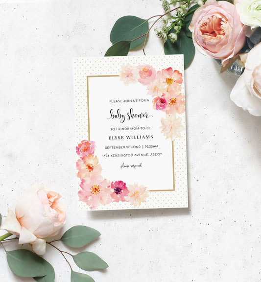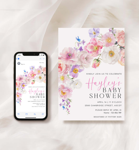 Piper Floral Pink | Printable Baby Shower Invitation Template