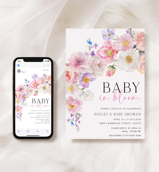 Piper Floral White | Printable Baby In Bloom Baby Shower Invitation Template
