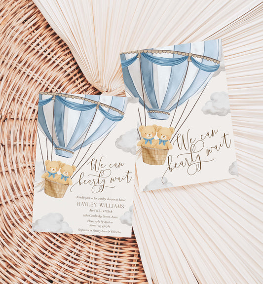 Bearly Wait | Printable Twins Baby Shower Invitation Template