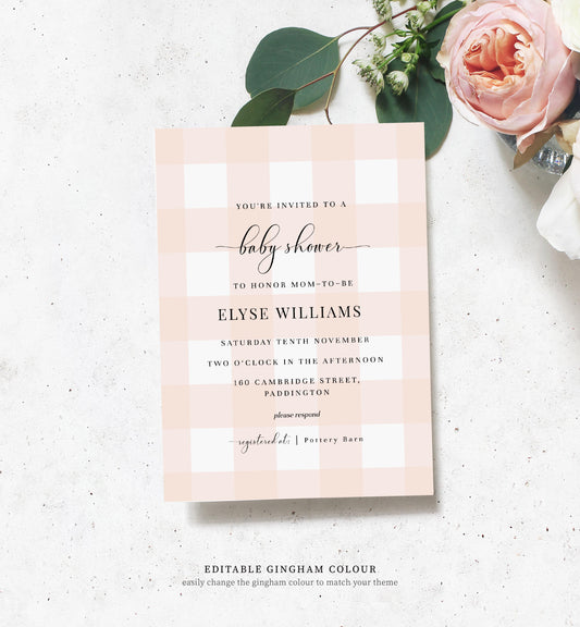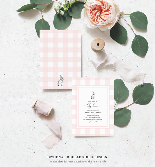 Gingham Pink Bunny | Printable Baby Shower Invitation Suite Template