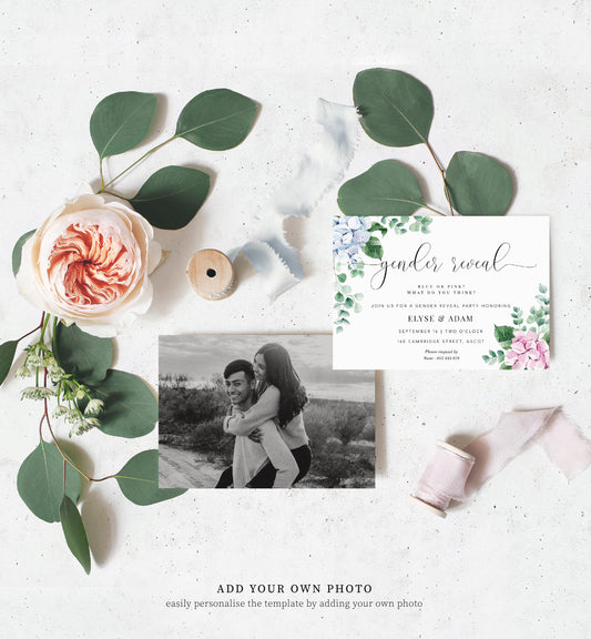 Ferras Blossom Pink Blue | Printable Gender Reveal Invitation Template