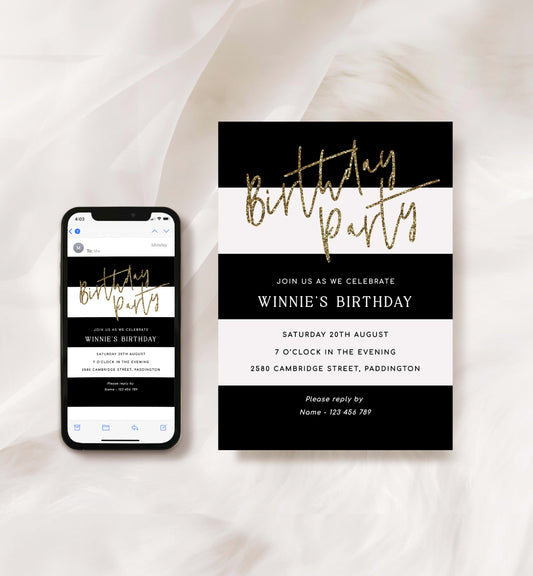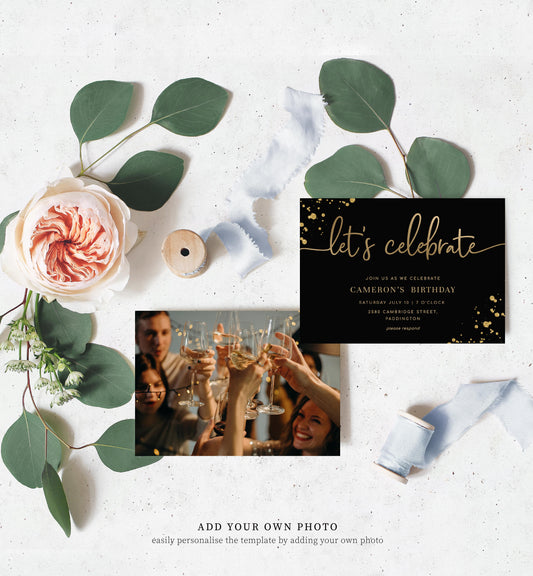 Paintly Black Gold | Printable Let's Celebrate Birthday Invitation