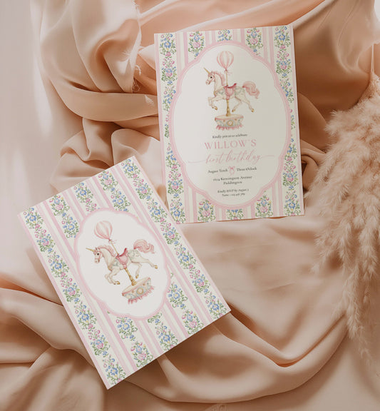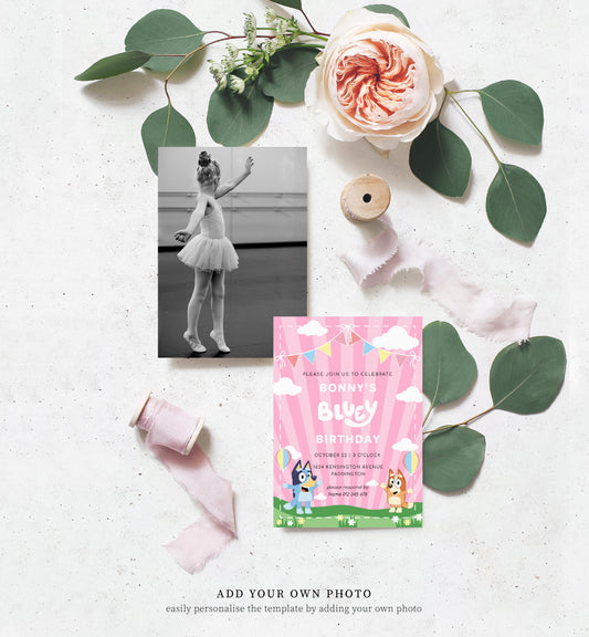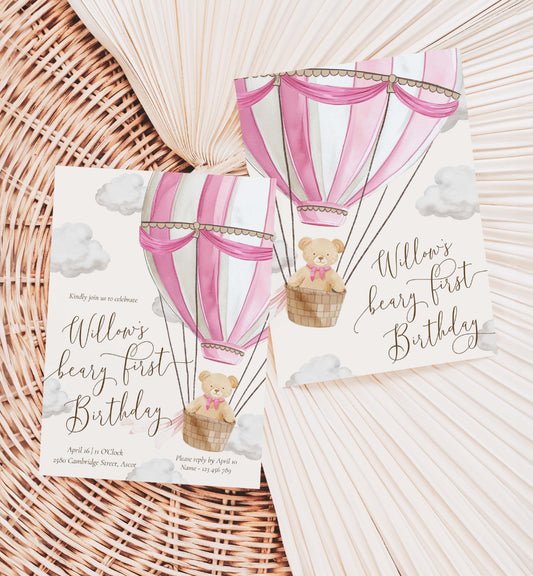 Teddy Bear Pink | Printable First Birthday Invitation Template