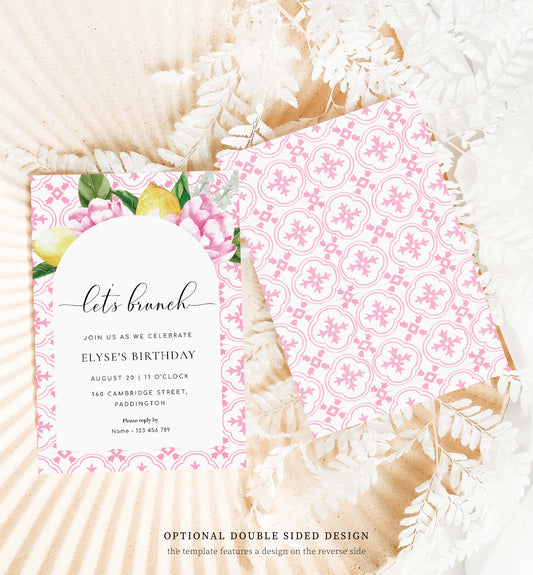 The Med Arch Pink Lemons | Printable Brunch Birthday Invitation Template