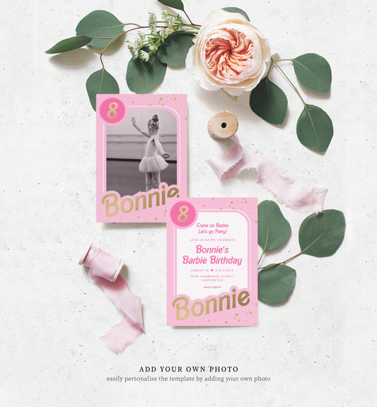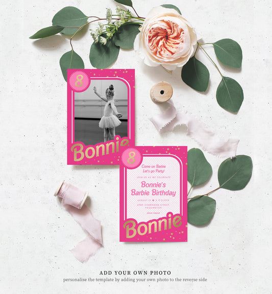 Barbie Party Pink Gold | Printable Birthday Invitation Template