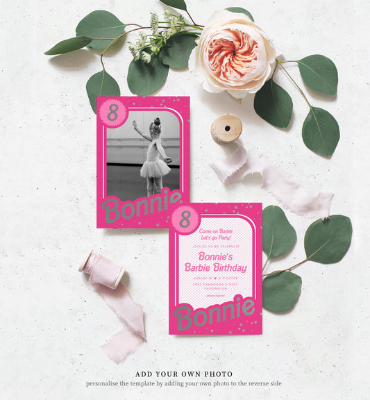 Paintly Hot Pink | Printable Barbie Birthday Invitation Template