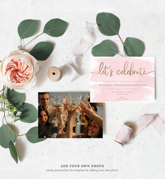 Watercolour Pink Gold | Printable Let's Celebrate Birthday Invitation