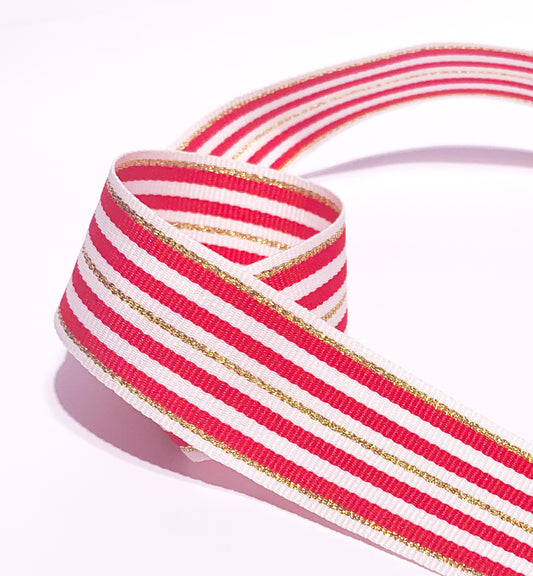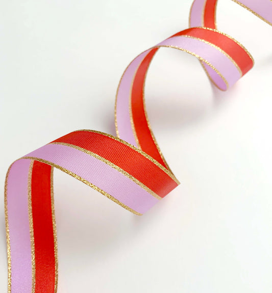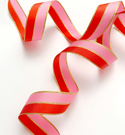 Ribbon | 25mm wide Poppy Pink Red Gold Striped