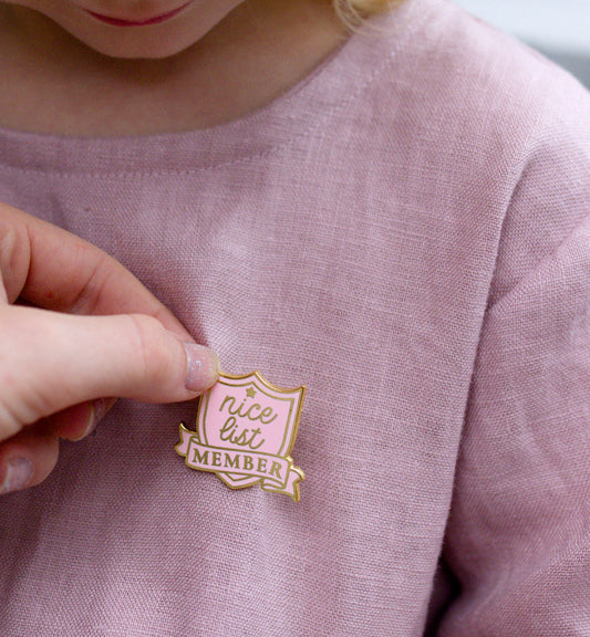 Nice List Member Pink Gold | Christmas Enamel Pin Badge