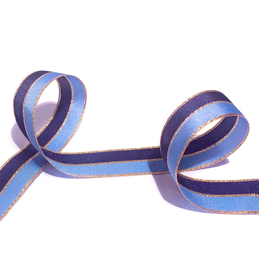 Ribbon | 25mm wide Navy Blue Gold Striped