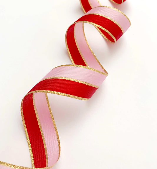 Ribbon | 25mm wide Red Pink Gold Striped