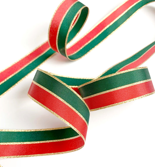 Ribbon | 25mm wide Red Green Gold Striped