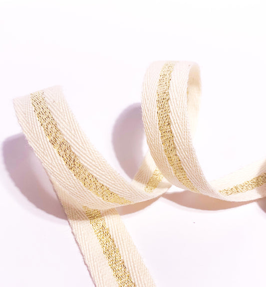 Ribbon | 15mm wide Cream and Gold Striped Cotton Twill Ribbon
