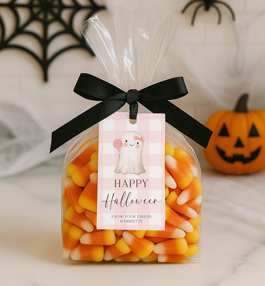 Gingham Pink | Printable Halloween Tag Template