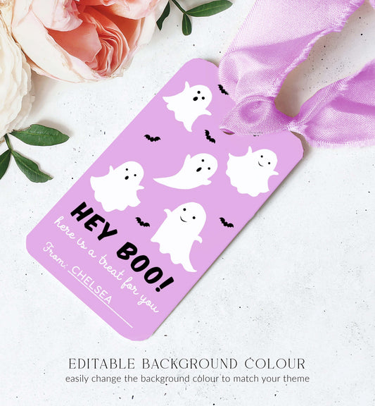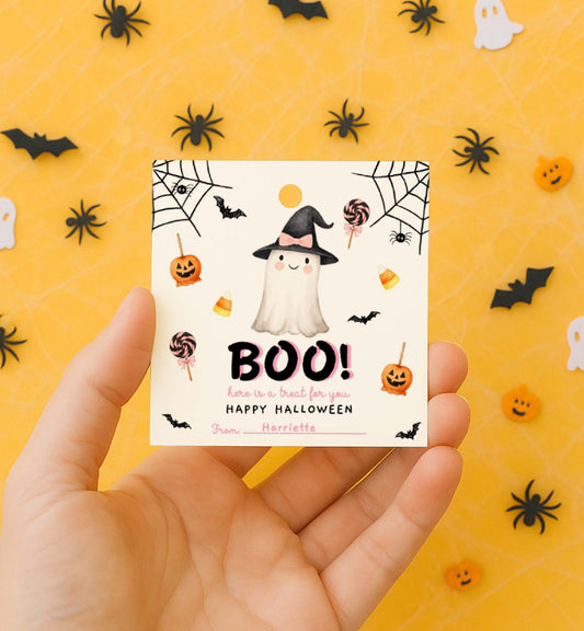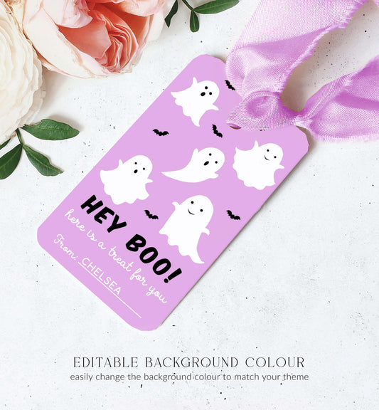 Friendly Ghost Pink | Printable Halloween Favour Tag Template