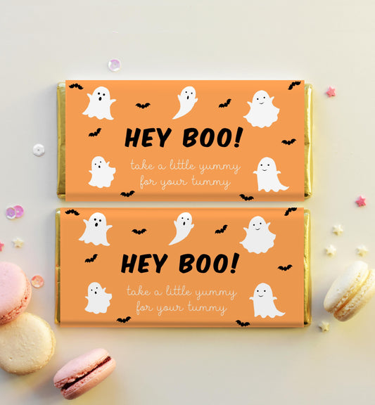 Friendly Ghost Orange | Printable Halloween Chocolate Bar Favour Wrappers Template
