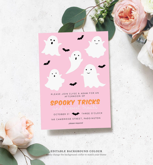 Friendly Ghost Orange | Printable Halloween Trick Or Treat Invitation