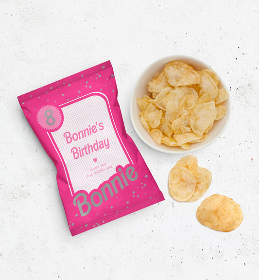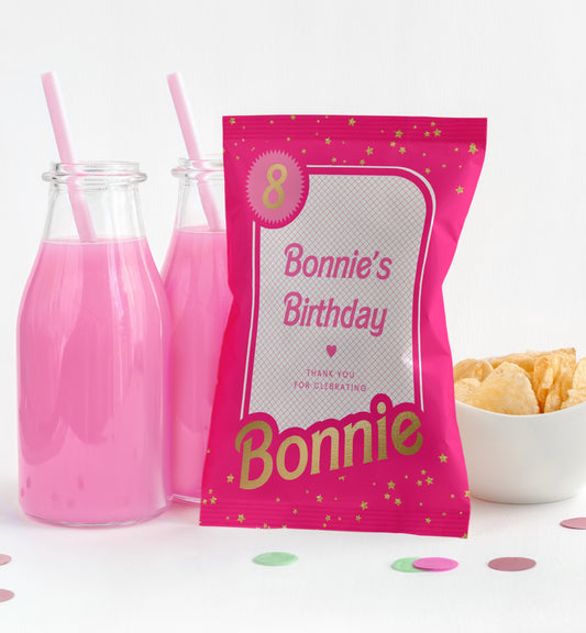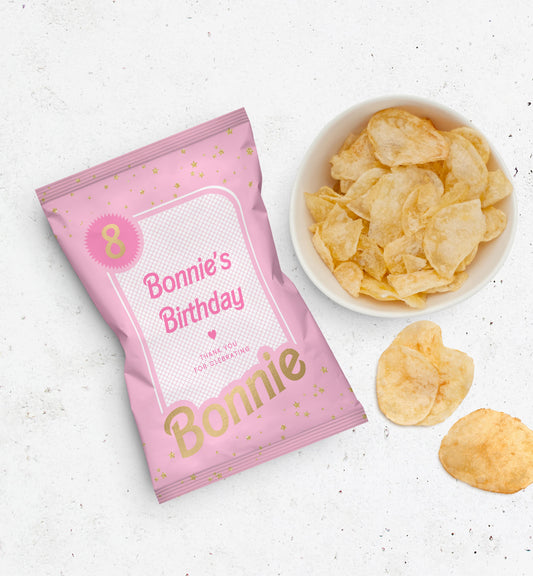 Barbie Party Pink Gold | Printable Chip Packet Favour Template