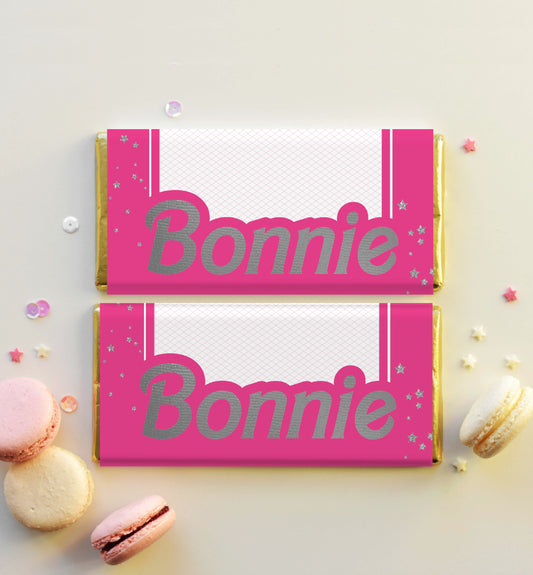 Barbie Party Hot Pink Silver | Printable Chocolate Bar Favour Wrappers Template