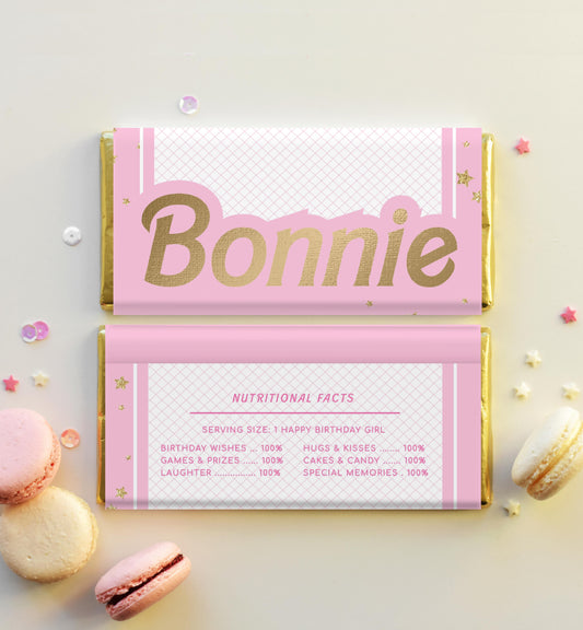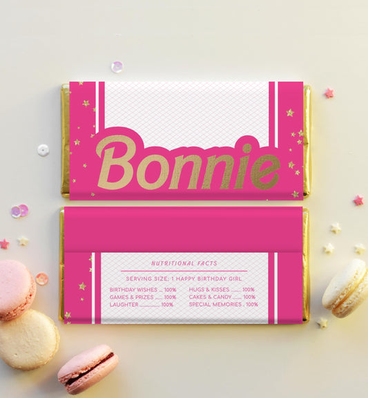 Barbie Party Pink Gold | Printable Chocolate Bar Favour Wrappers Template