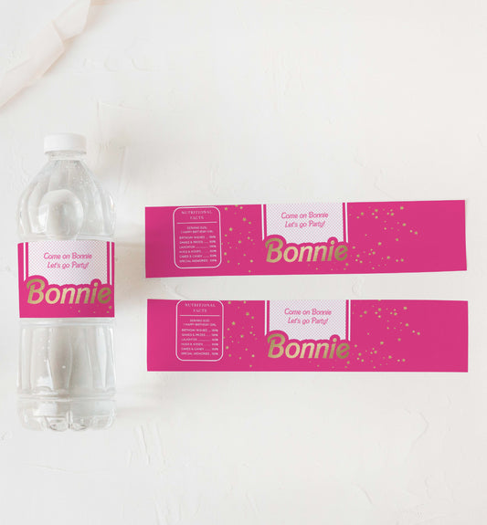 Barbie Party Hot Pink Gold | Printable Water Bottle Favour Labels Template