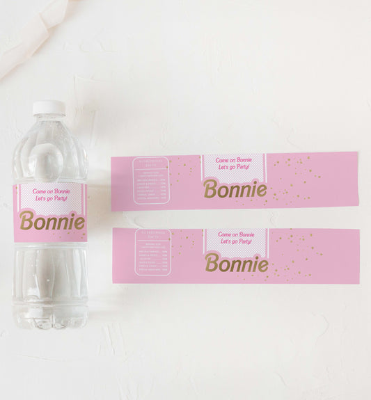 Barbie Party Pink Gold | Printable Water Bottle Favour Labels Template