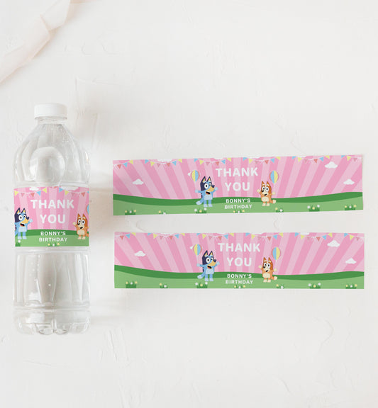 Bluey Pink | Printable Water Bottle Favour Labels Template