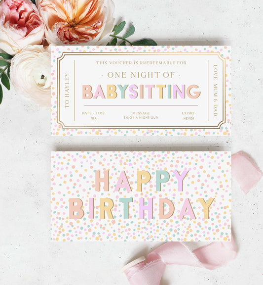 Dot Pastel | Printable Babysitting Gift Voucher Template