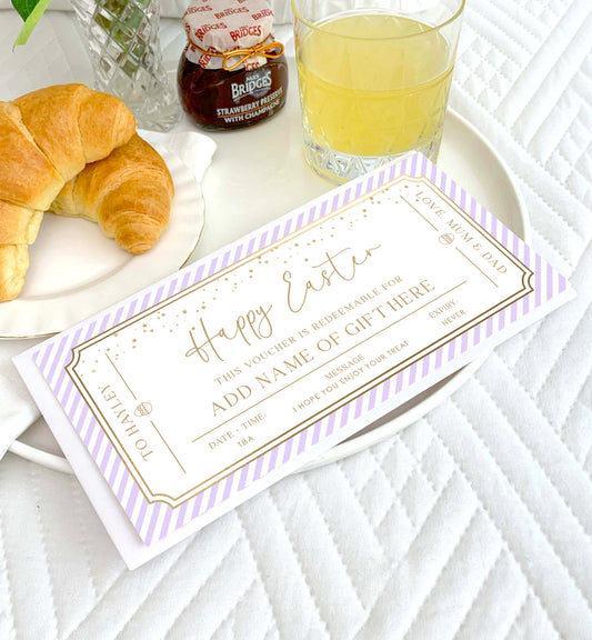 Stripe Purple | Printable Easter Cheque Gift Voucher Template