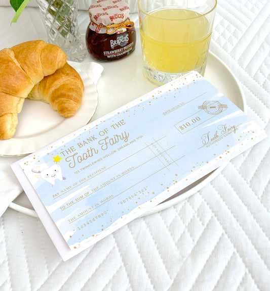 Watercolour Blue | Printable Tooth Fairy Cheque Gift Voucher Template
