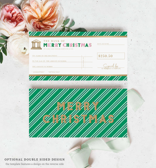 Stripe Green Pink | Printable Christmas Cheque Gift Voucher Template