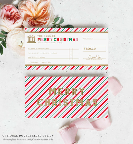Stripe Pink Multi | Printable Christmas Cheque Gift Voucher Template