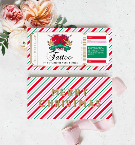 Stripe Multi Gold | Printable Christmas Tattoo Custom Gift Voucher Template