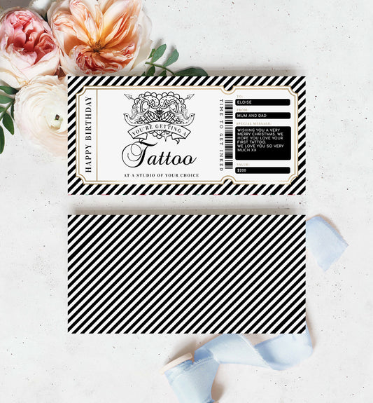 Stripe Black Gold | Printable Tattoo Custom Gift Voucher Template