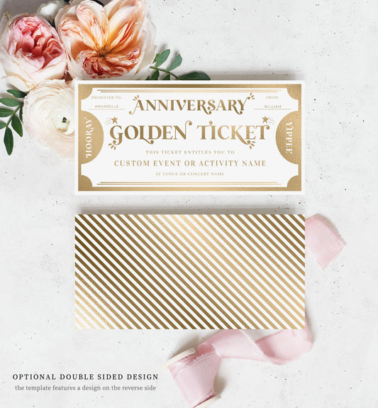 Golden Ticket Gold | Printable Anniversary Custom Gift Voucher Template