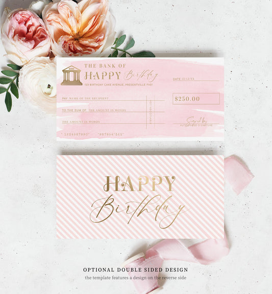 Watercolour Pink | Printable Birthday Cheque Gift Voucher Template