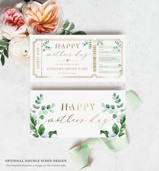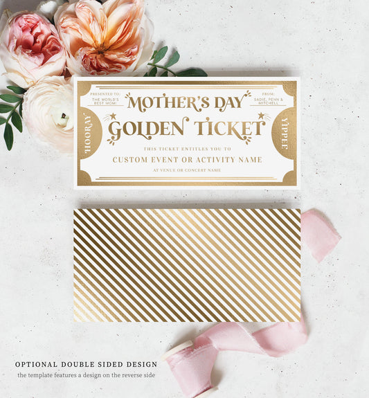 Golden Ticket Gold | Printable Mother's Day Custom Gift Voucher Template