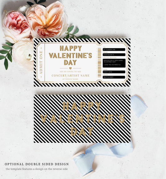 Stripe Black Gold | Printable Valentine's Concert Custom Gift Voucher Template