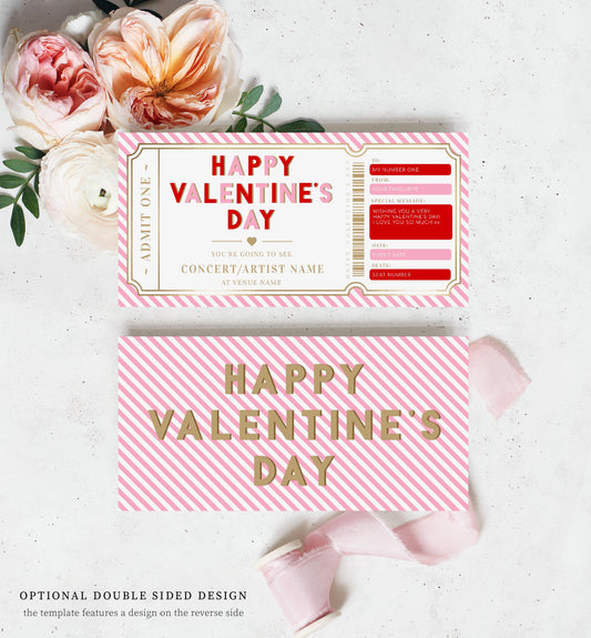 Stripe Pink Gold | Printable Valentine's Concert Custom Gift Voucher Template