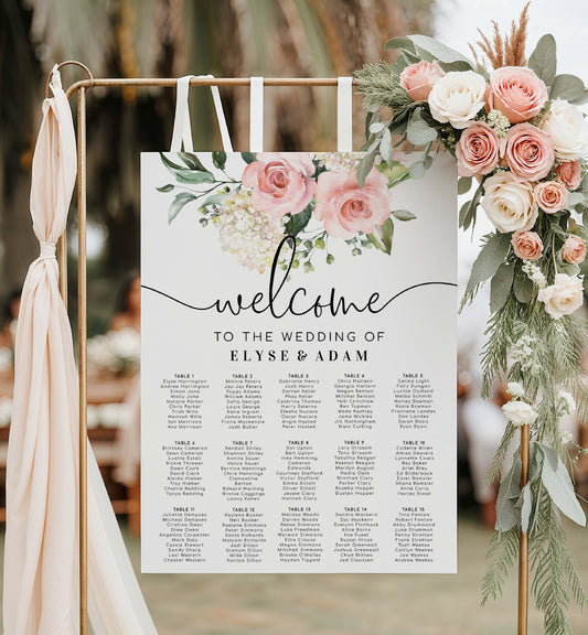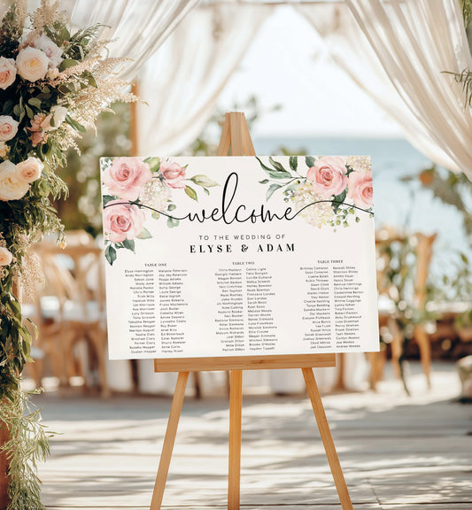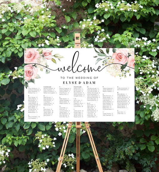 Darcy Floral Pink | Printable Seating Chart Template - Alphabetical