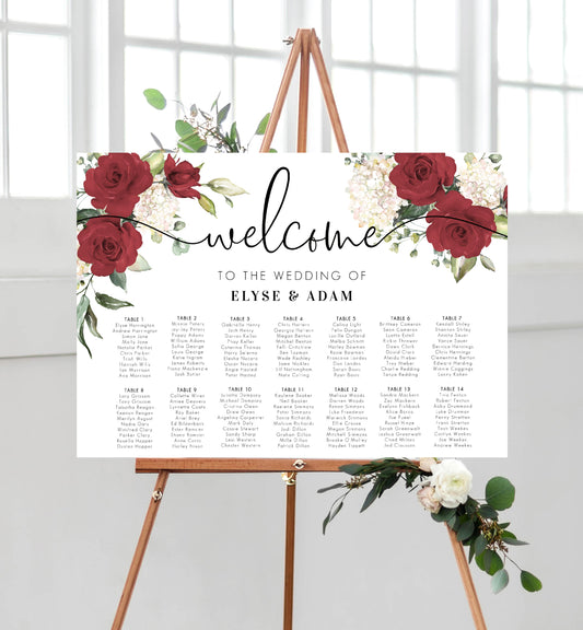 Darcy Floral Red | Printable Seating Chart - Alphabetical