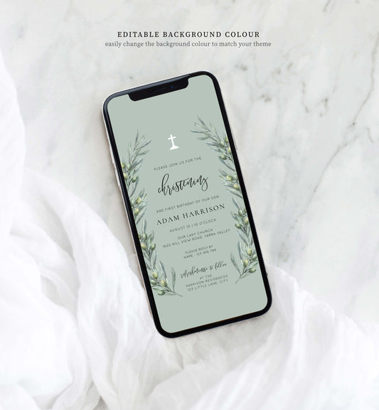Olive Grove Green | Smartphone Christening Invitation Template