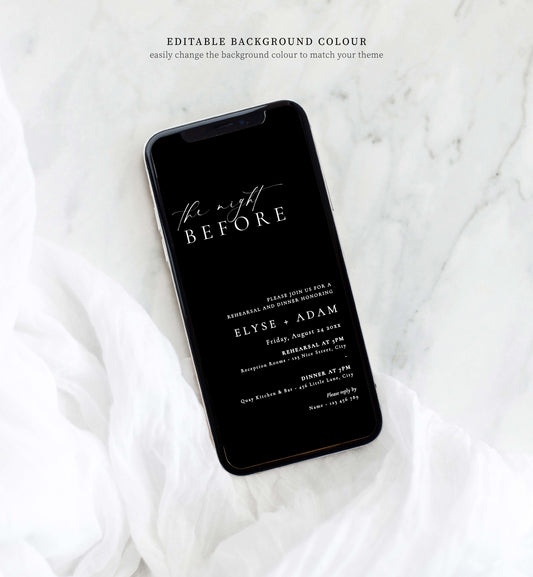 Ellesmere White | Smartphone Rehearsal Dinner Invitation Template
