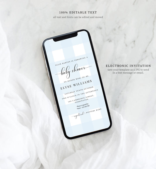 Gingham Blue | Smartphone Baby Shower Invitation Template