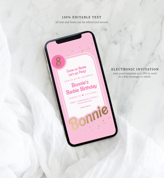 Barbie Party Pink Gold | Smartphone Birthday Invitation Template