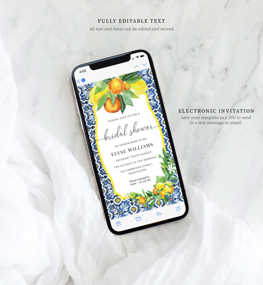 Positano Lemons Oranges | Smartphone Bridal Shower Invitation Template