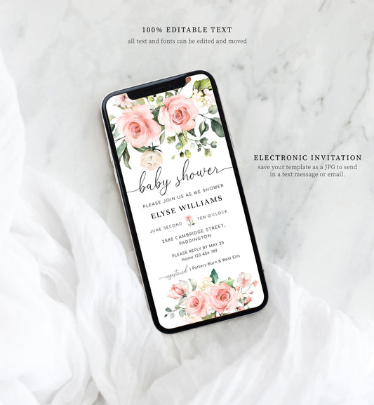 Darcy Floral Pink | Smartphone Baby Shower Invitation