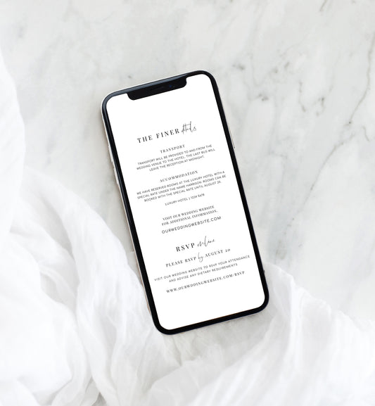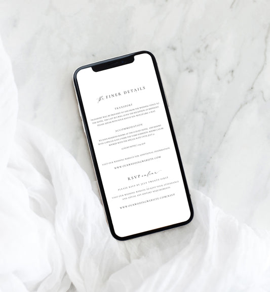 Ellesmere White | Smartphone Wedding Invitation & Details Template