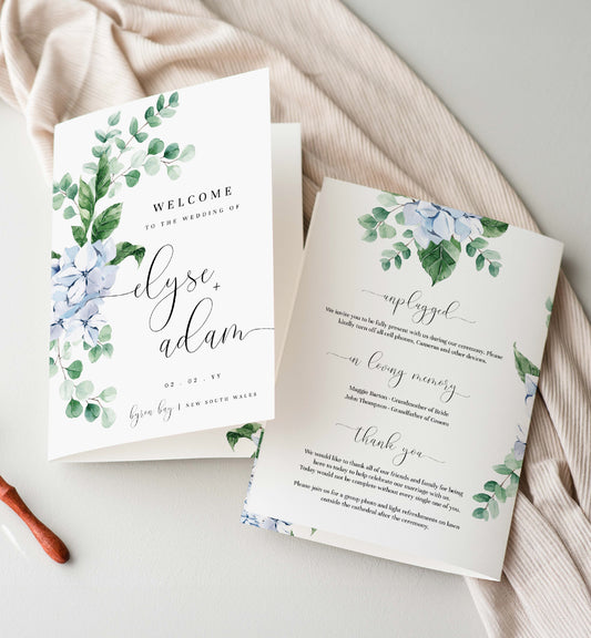Ferras Blossom Blue | Printable Wedding Folded Program Template